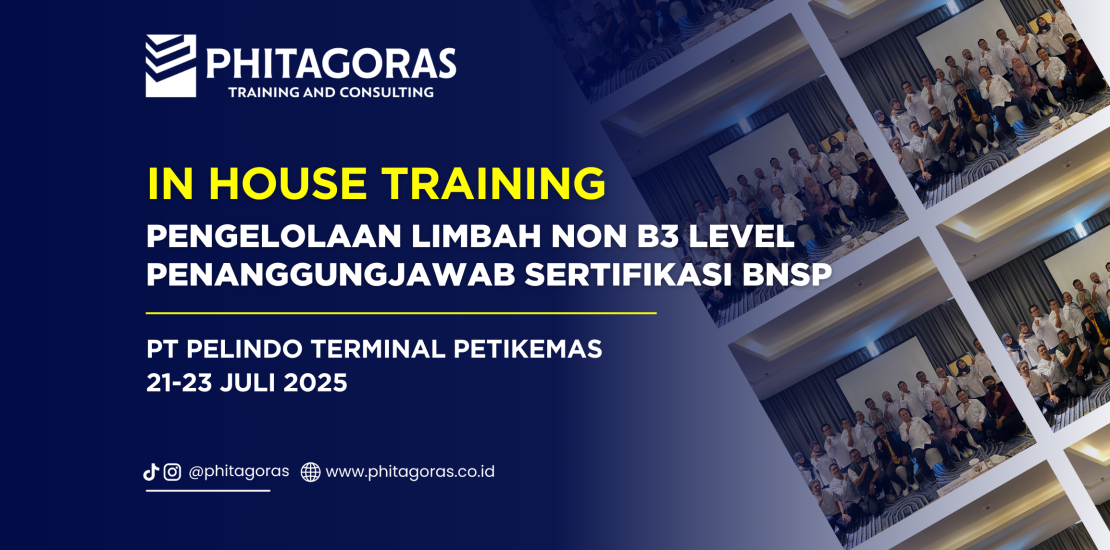 Phitagoras Training & Consulting telah sukses menyelenggarakan In House Training (IHT) Pengelolaan Limbah Non B3 Level Penanggung Jawab Sertifikasi BNSP pada tanggal 21–23 Juli 2025 di PT Pelindo Terminal Petikemas. Kegiatan ini menjadi salah satu bentuk nyata komitmen perusahaan dalam meningkatkan kompetensi SDM sekaligus mendukung penerapan standar pengelolaan lingkungan yang lebih berkelanjutan.