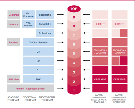 The NEBOSH International General Certificate in Occupational Health and Safety has been accredited and credit rated by the Scottish Qualifications Authority (SQA) Accreditation. It is accredited on the Scottish Credit and Qualifications Framework (SCQF) at SCQF at Level 6 with 11 SCQF credit points. SCQF Level 6 is comparable to RQF/CQFW Level 3 in England, Wales, and Northern Ireland and Level 4 on the Indonesian Qualification Framework, as shown below.