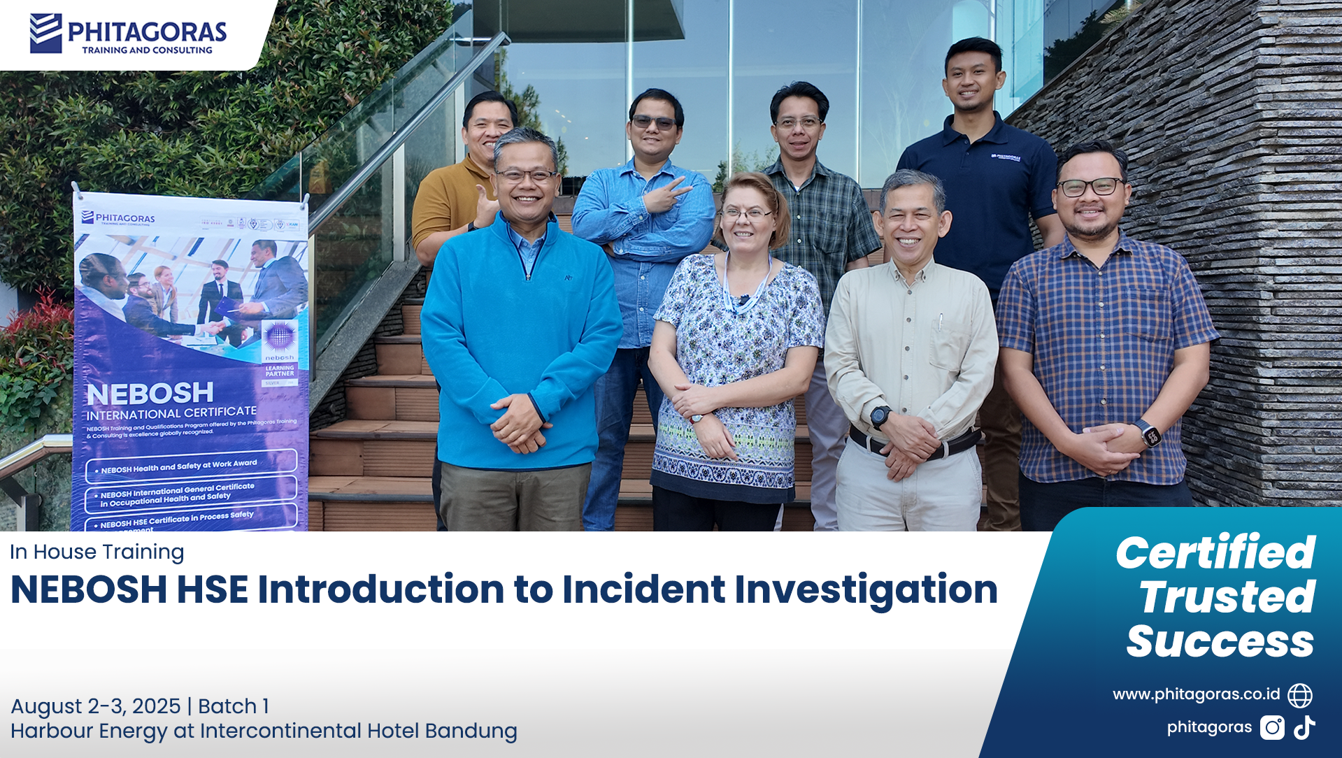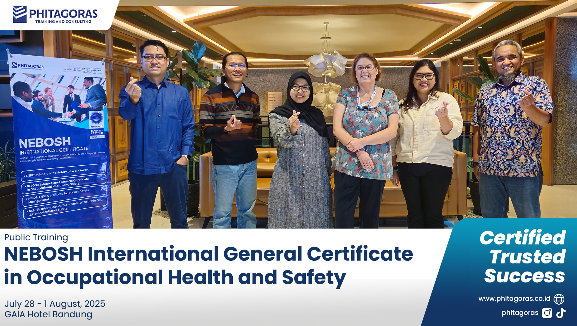 Established in 2003, Phitagoras is an officially recognized Occupational Health and Safety Training Provider (PJK3) by the Indonesian Ministry of Manpower (KEMNAKER), and is the first training institution in Indonesia to be certified with ISO 29993:2017 (learning services outside formal education). Phitagoras holds six international certifications: ISO 29993:2017 from Sucofindo, ISO 9001:2015 from BSI, ISO 45001:2018 from Bureau Veritas, NEBOSH UK Approved Learning Partner, British Safety Council Approved Centre, and Chartered Institute of Environmental Health (CIEH) UK Registered Centre.