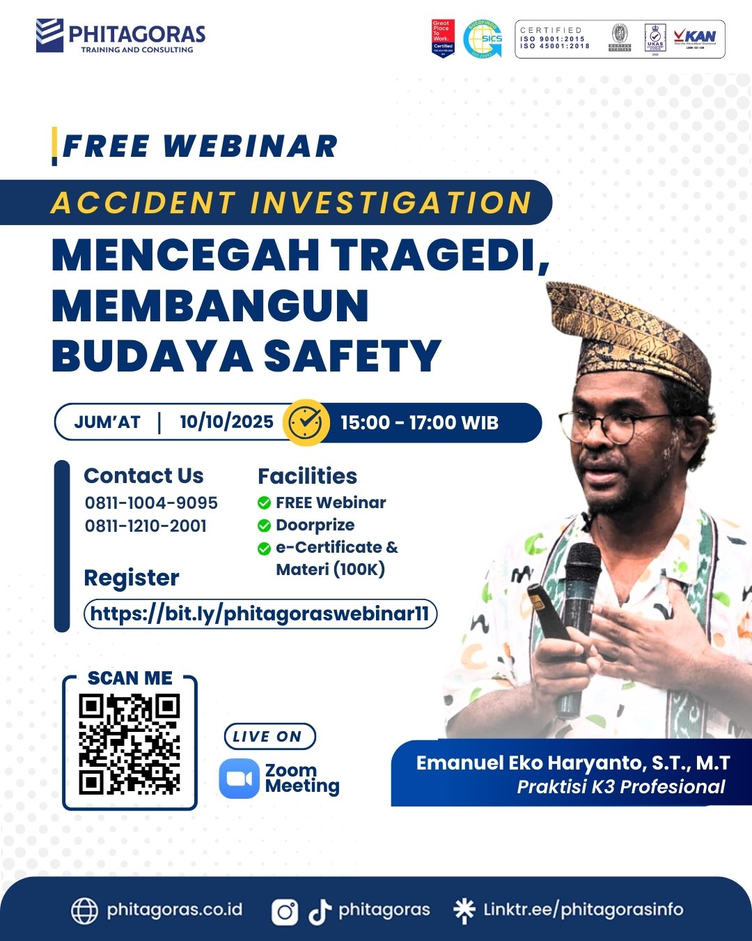 Pelatihan ini bertujuan untuk meningkatkan kemampuan peserta dalam melakukan investigasi kecelakaan kerja secara efektif di berbagai sektor industri. Peserta akan mempelajari teknik pengumpulan data, analisis penyebab, dan penyusunan laporan kecelakaan untuk mengidentifikasi akar masalah dan mencegah kejadian serupa di masa depan